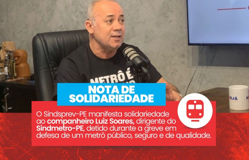 O Sindsprev-PE manifesta sua solidariedade ao companheiro Luiz Soares, dirigente do Sindmetro-PE, detido nesta segunda-feira (3) durante a greve da categoria em defesa de um metrô público, seguro e de qualidade.