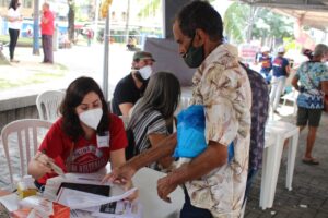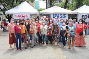 A feira de serviços públicos foi organizada pela manhã, na Praça da Independência, com orientações para os populares entre 9h e 12h. Um stand foi montado para cada serviço e cada pessoa já se dirigia para aquele que correspondesse à sua dúvida. Dessa maneira, o Sindsprev orientou o povo sobre direitos previdenciários, fez entrega de panfletos explicando os prejuízos da reforma e conscientizando a todos também sobre a importância do cuidado e prevenção contra a Covid-19, com entrega de máscaras personalizadas e protetores faciais (face shield’s).